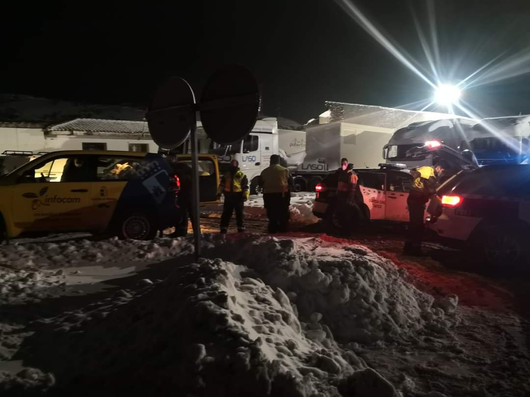 Unos 900 vehículos pesados, en los que viajan unas 1.800 personas, han pasado la noche parados en diversos puntos de la provincia de Guadalajara, a la espera de que se abra el tráfico hacia la Comunidad de Madrid.