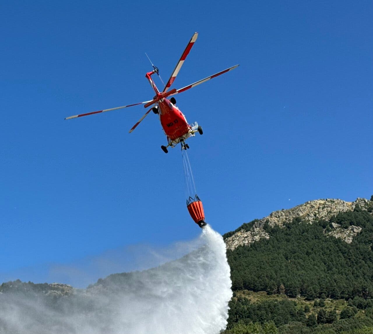 En las tareas participan también medios de la Comunidad de Madrid, con un helicóptero bombardero y una brigada helitransportada. Estos equipos refuerzan las actuaciones del Plan INFOCAM del Gobierno de Castilla-La Mancha.