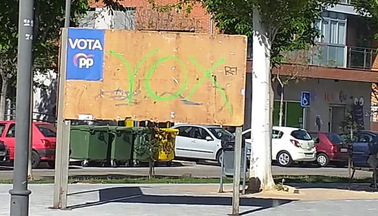 Vox Guadalajara se ha desmarcado de las pintadas que han aparecido en uno de los lugares especiales y gratuitos reservados para la colocación de carteles de propaganda electoral en el municipio de Azuqueca de Henares.