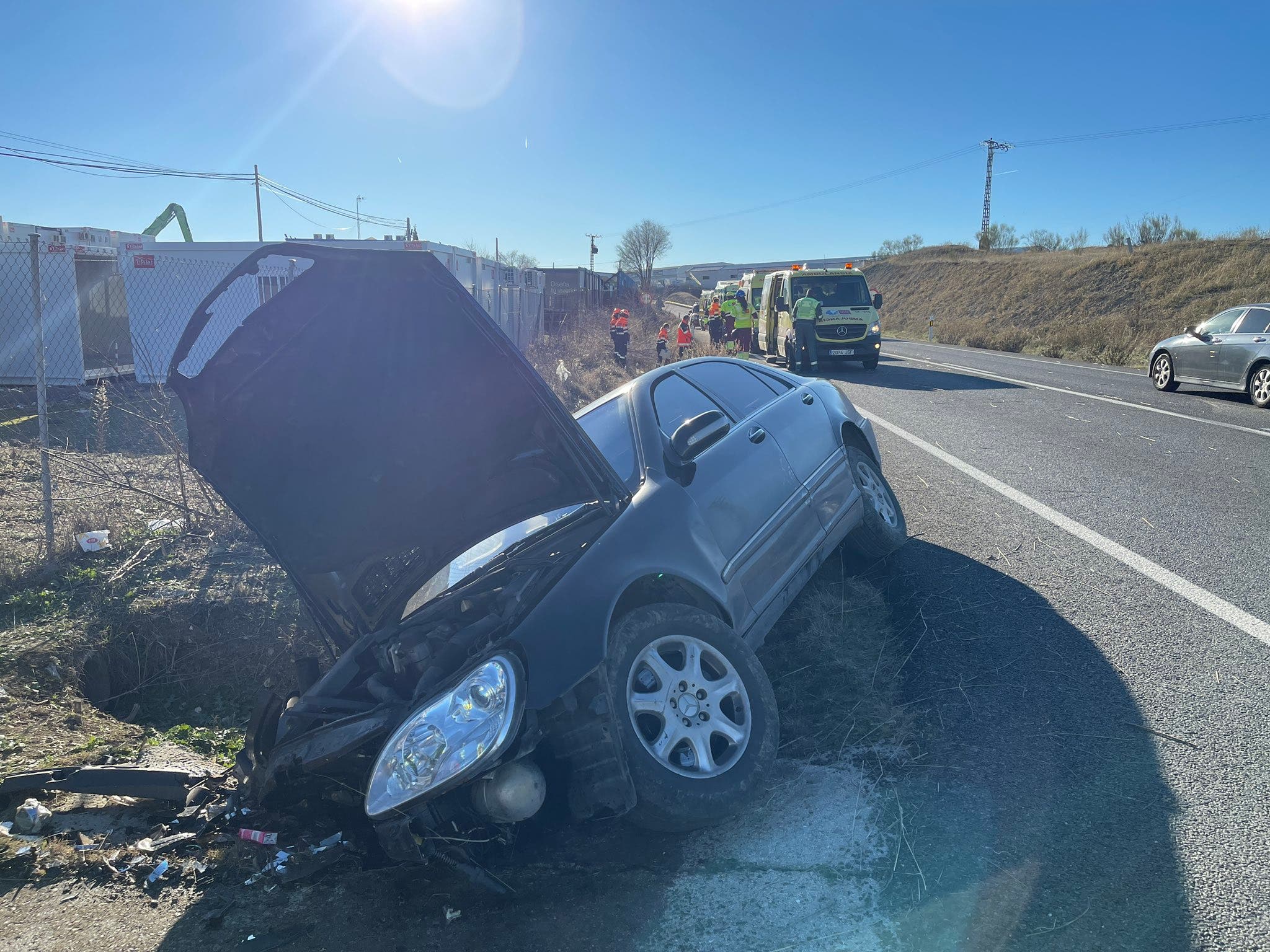 El herido de 24 años, que iba en el asiento del copiloto, fue trasladado por un helicóptero del SUMMA al Hospital 12 de Octubre con dolores en la espalda y diversos traumatismos.