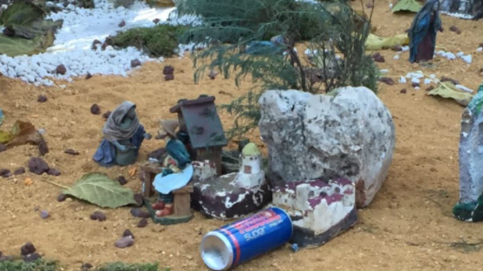 Otras piezas del belén se encontraron tumbadas, además de hallarse en la zona de exposición, que presentaba algunos destrozos, recipientes vacíos de bebidas.