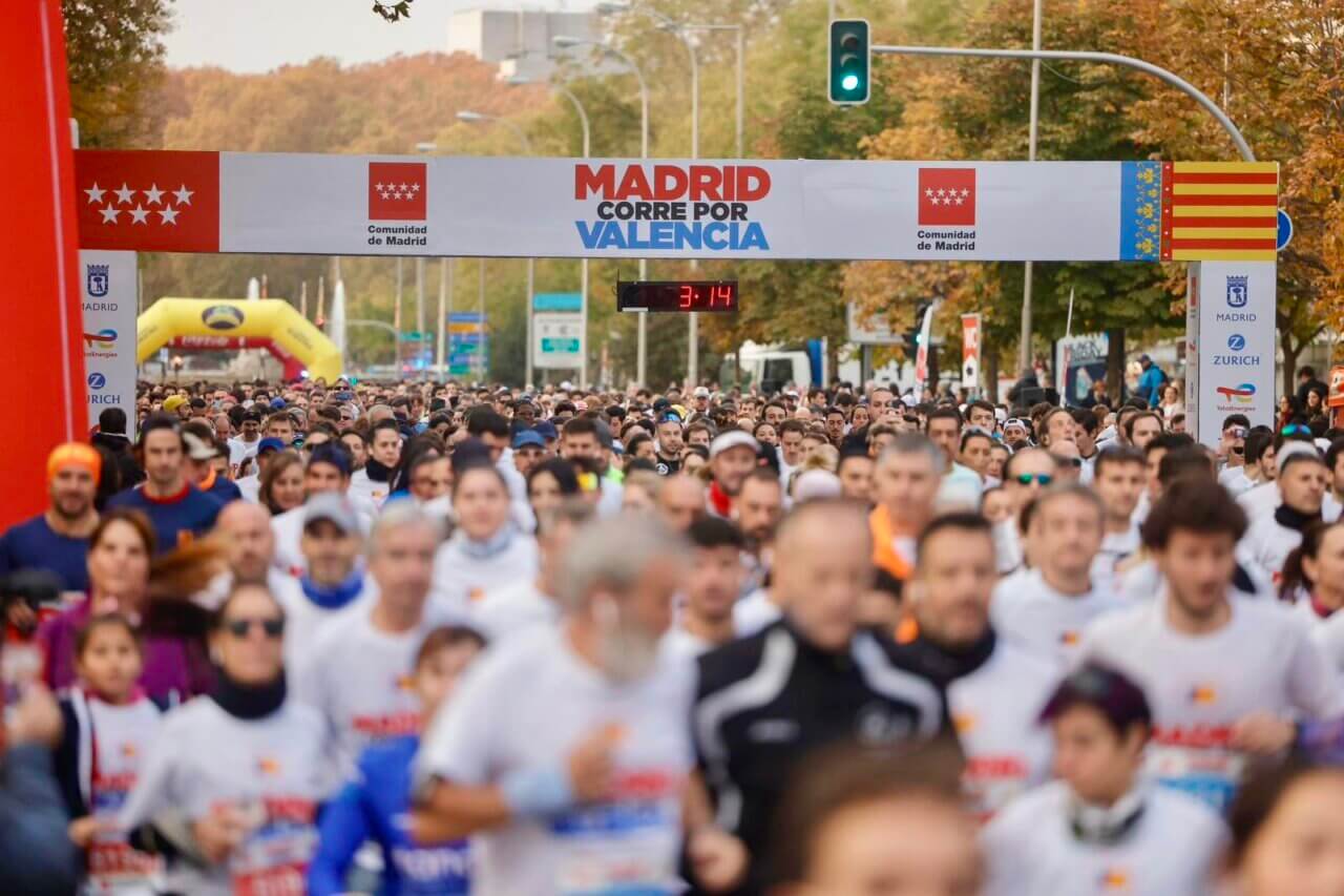 La Comunidad de Madrid ha celebrado este domingo la carrera solidaria Madrid corre por Valencia, cuya recaudación se destinará a ayudar a las víctimas de la DANA de octubre que afectó a miles de personas y más de 75 municipios.