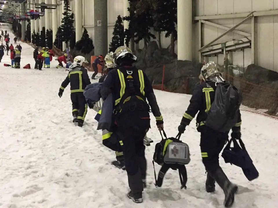 La llamada al 112 se produjo a las 18.30 horas. Según han indicado desde el 112, han recibido bastantes llamadas cuando llevaban ya hora y media atrapados en esta pista cubierta de esquí.