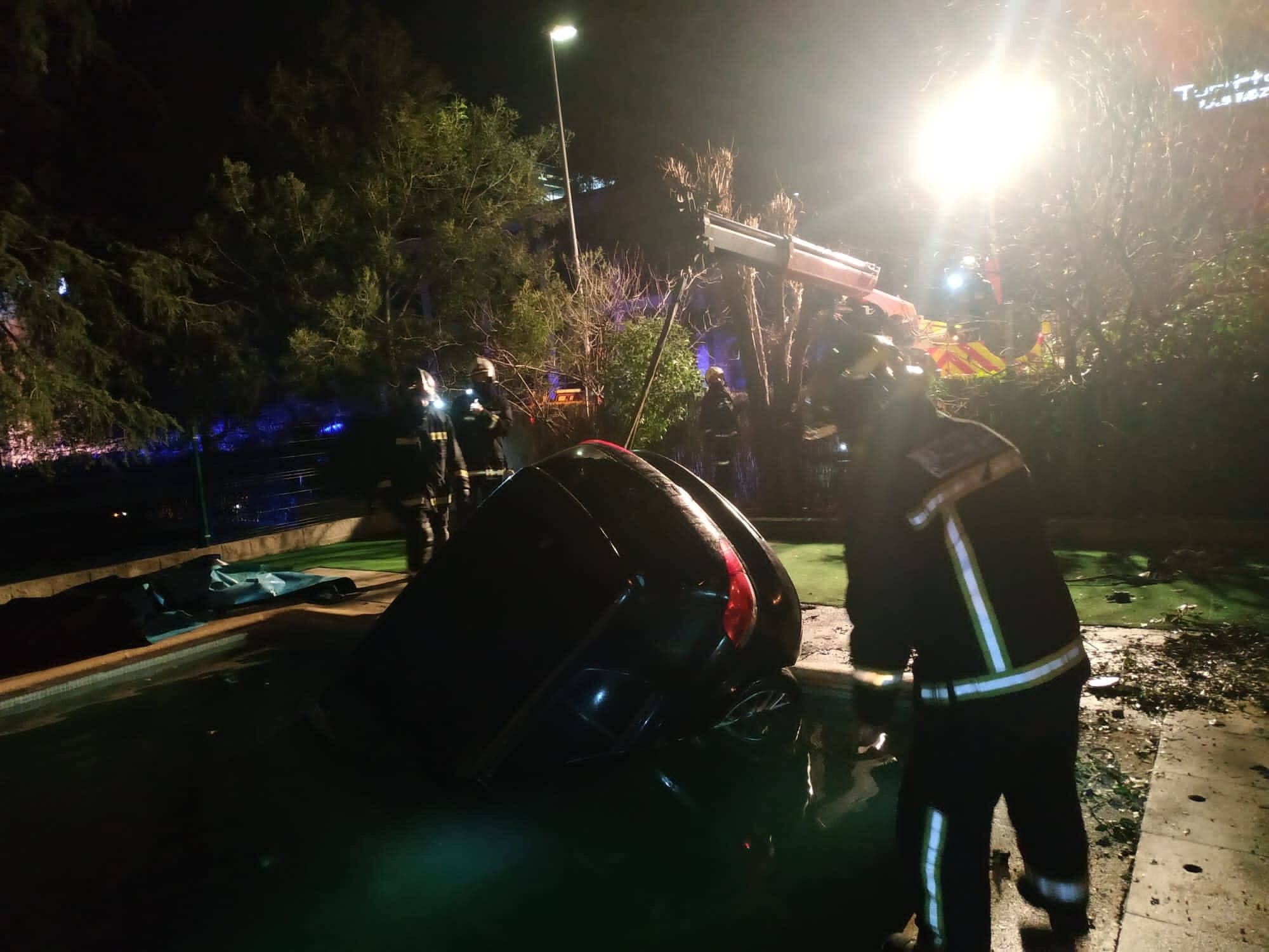 Los Bomberos tuvieron que rescatar el vehículo de la piscina con ayuda de una grúa y la Guardia Civil se ha hecho cargo de la investigación.