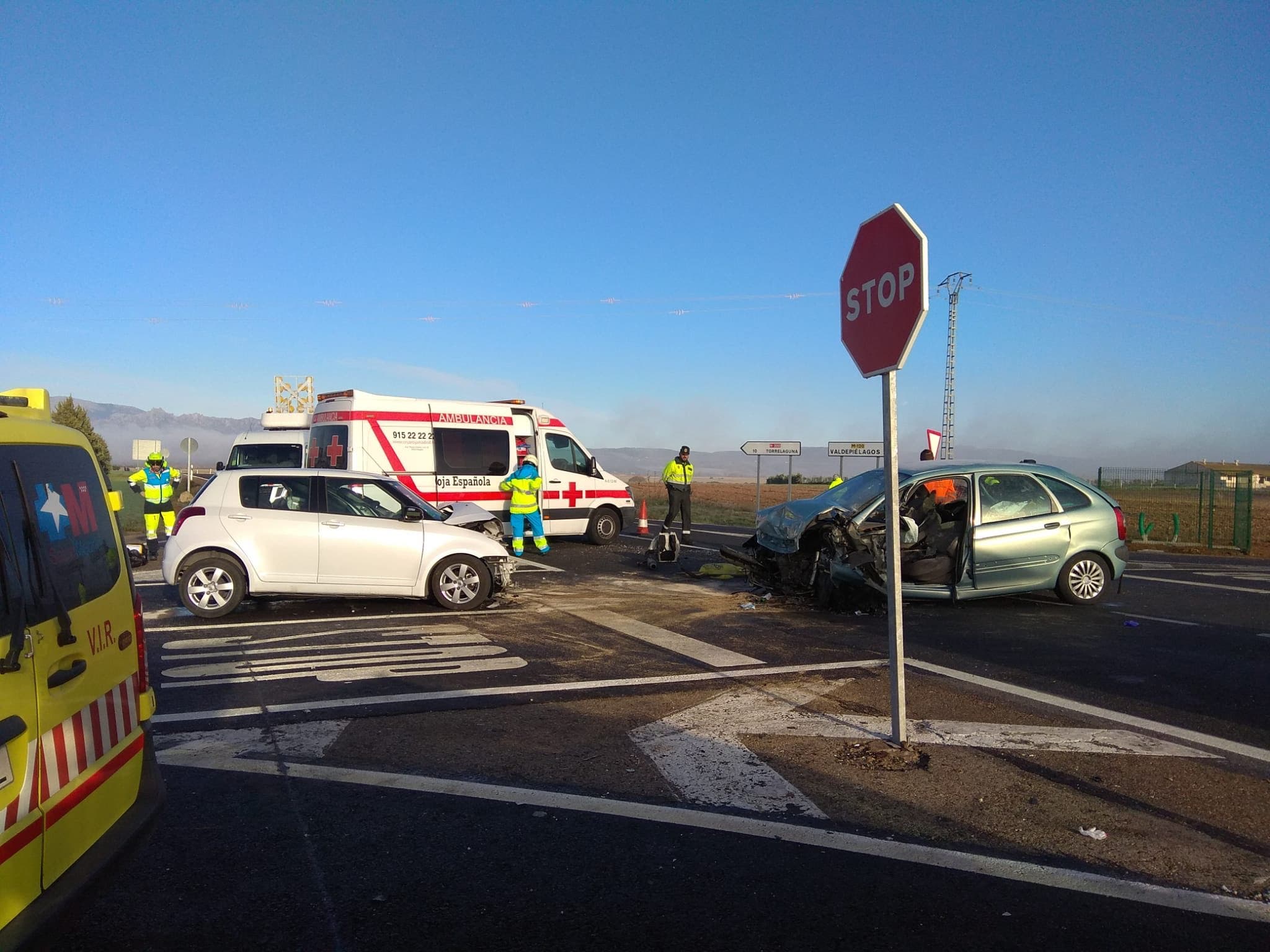 El choque frontal entre dos vehículos ha dejado a una mujer de 44 años herida grave con una rotura de cadera y ha tenido que ser rescatada por los Bomberos y trasladada por el SUMMA al Hospital de La Paz.
