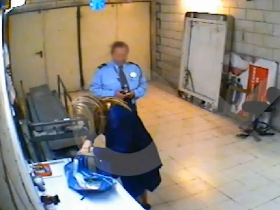 En las imágenes del vídeo de seguridad se ve cómo la presidenta madrileña saca del bolso los dos botes de Olay y se los entrega al vigilante.