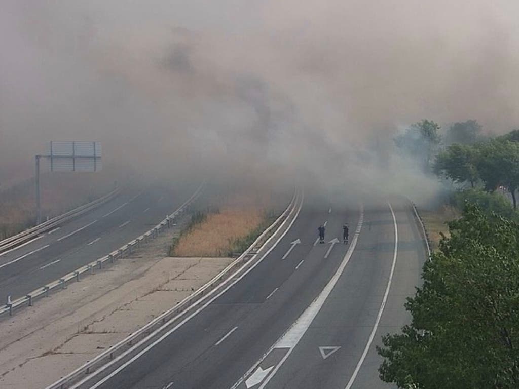 El humo del incendio de Méntrida (Toledo) llega a Madrid: nivel 2 y corte de la A-5