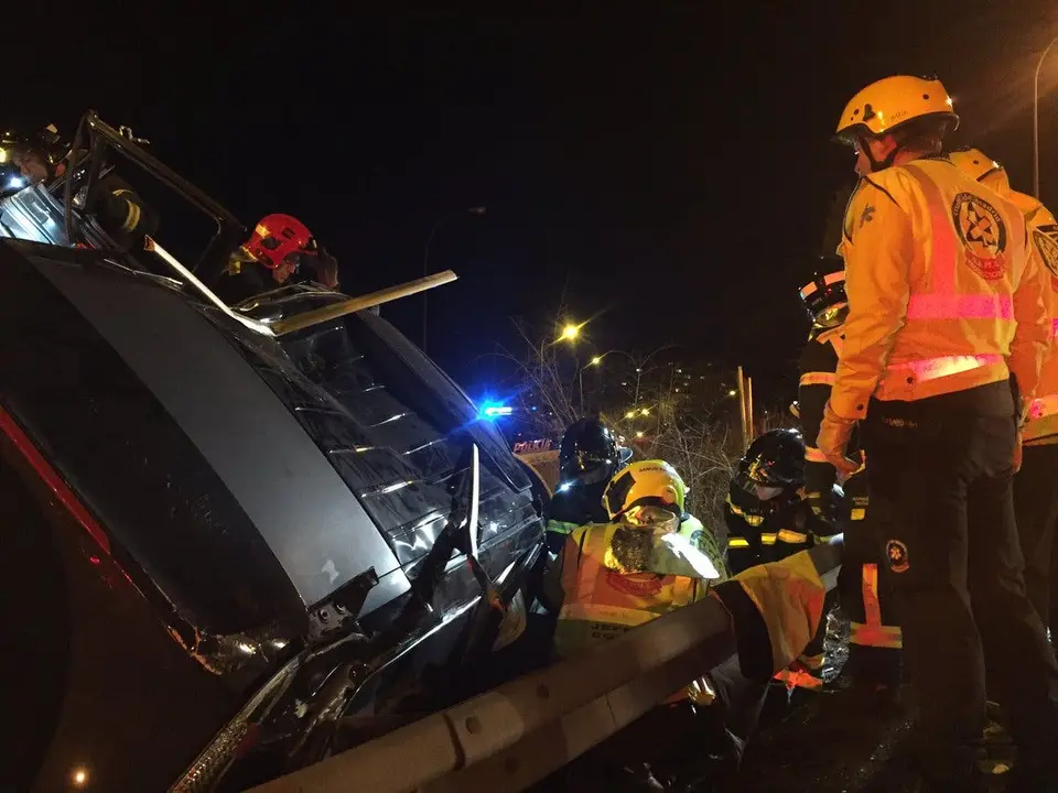En el turismo, que se salió de la calzada y quedó volcado, viajaba un matrimonio con su hija de 15 años, tendiendo que ser rescatados por los Bomberos y atendidos por el SAMUR.