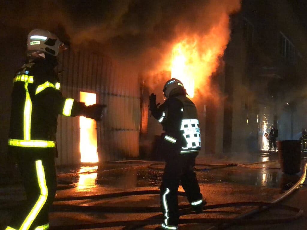 Aparatoso incendio con explosiones en una nave de San Sebastián de los Reyes