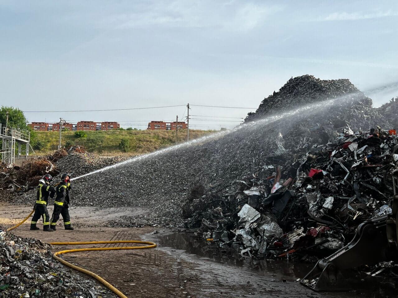 Además, han contado con la ayuda de la maquinaria propia de la instalación para remover la chatarra y facilitar las tareas de extinción.