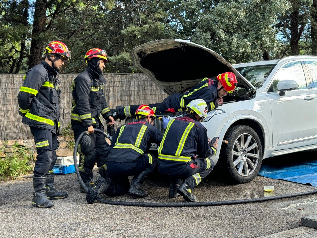 Aparatoso rescate de una gata atrapada en el motor de un coche en Boadilla