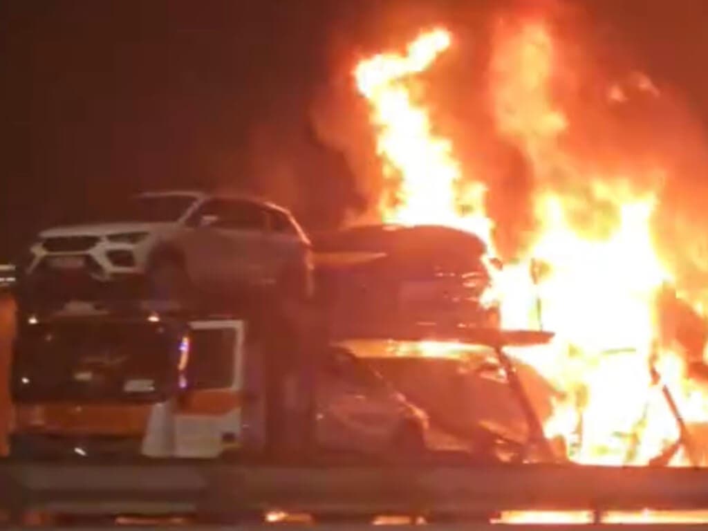 Arde un camión que transportaba coches en la M-45