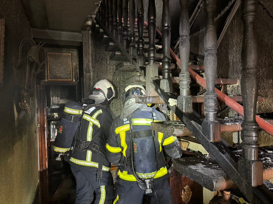 A su llegada, el fuego ya estaba muy extendido en la planta baja y las llamas ya habían roto por la fachada desde el salón de la planta inferior. Se trata de una vivienda unifamiliar de dos alturas.