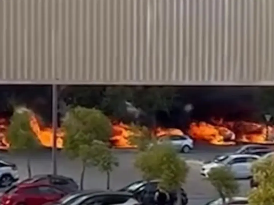 Arden diez coches en un incendio en el parking del centro comercial Xanadú