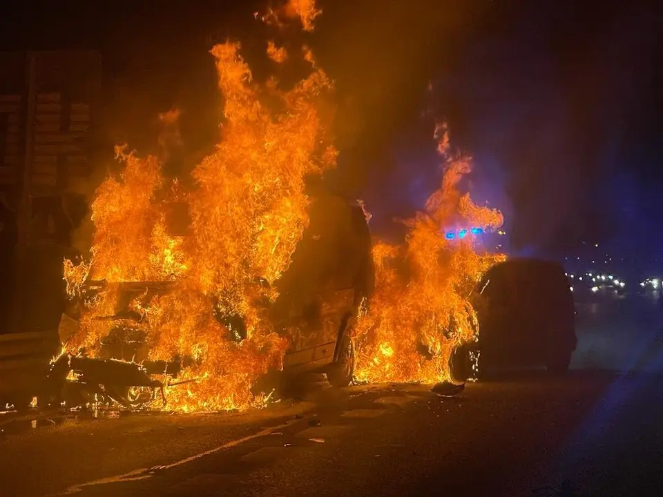 Arden dos vehículos tras chocar contra un camión en la M-40