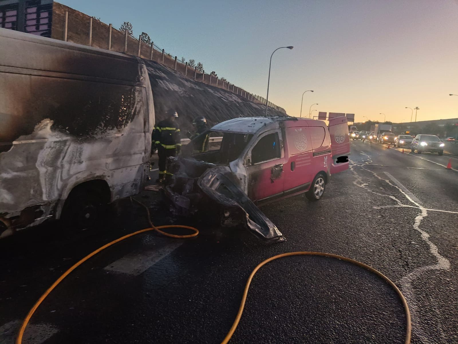 Una dotación del SAMUR que se dirigía a otro aviso lo ha presenciado y ha logrado rescatar al conductor de la furgoneta grande, que estaba atrapado, antes de que comenzaran las llamas.