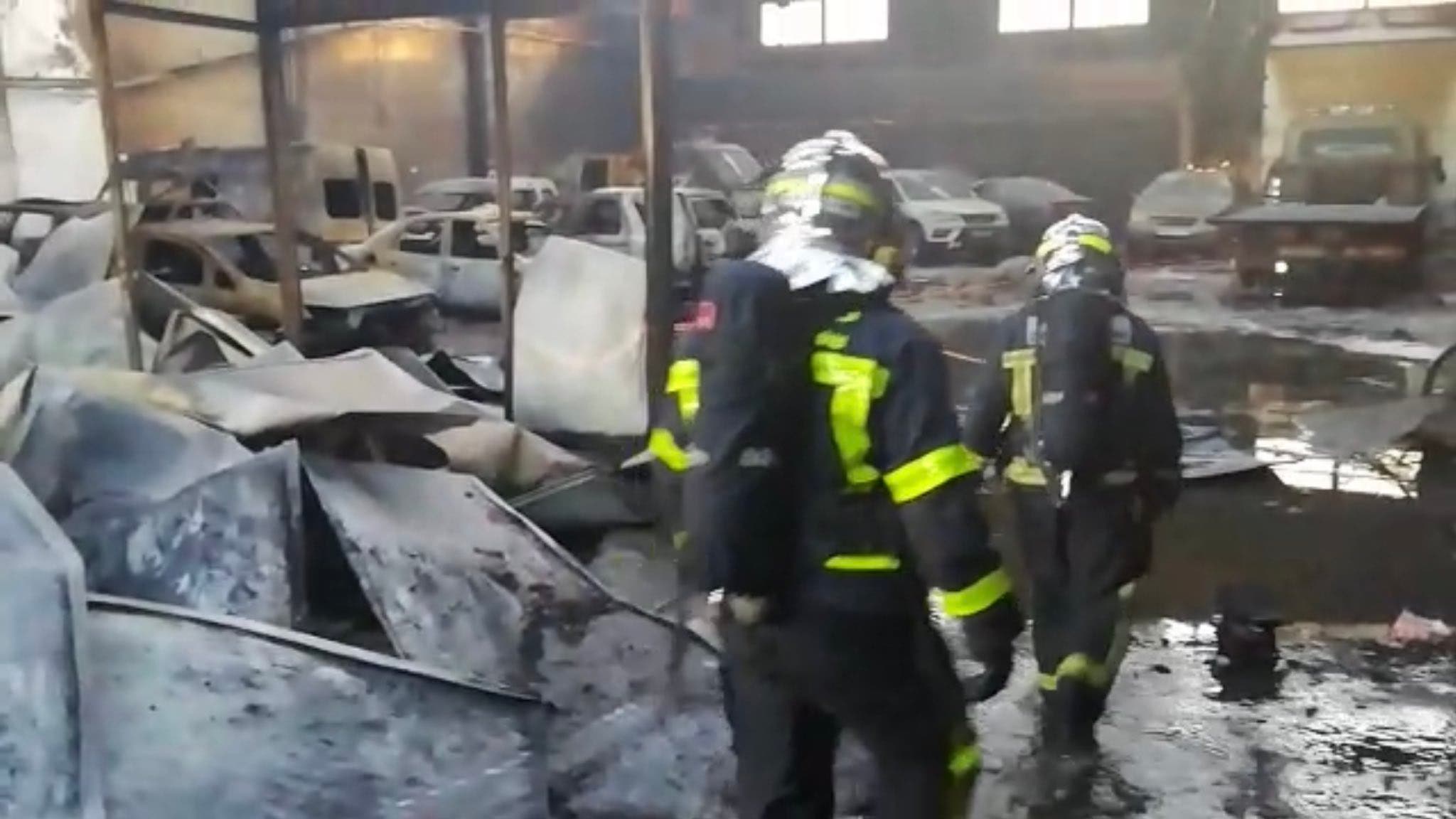 Más de veinte vehículos ardieron este jueves en una nave de un polígono industrial situado junto a la A-3, en Villarejo de Salvanés, informó el 112 de la Comunidad de Madrid.