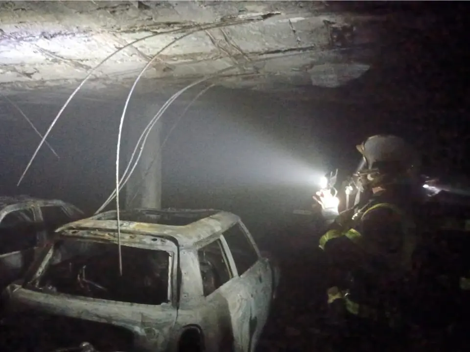 Arden siete coches y una moto en el incendio de un garaje subterráneo en Majadahonda