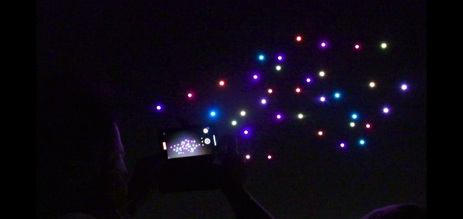 El homenaje se realizó con un enjambre de 40 drones programados y equipados con lámparas led multicolor que se elevaron al cielo en el Escenario Puerta del Ángel y pudo verse en el entorno de Madrid Río a partir de las 22.45 horas.