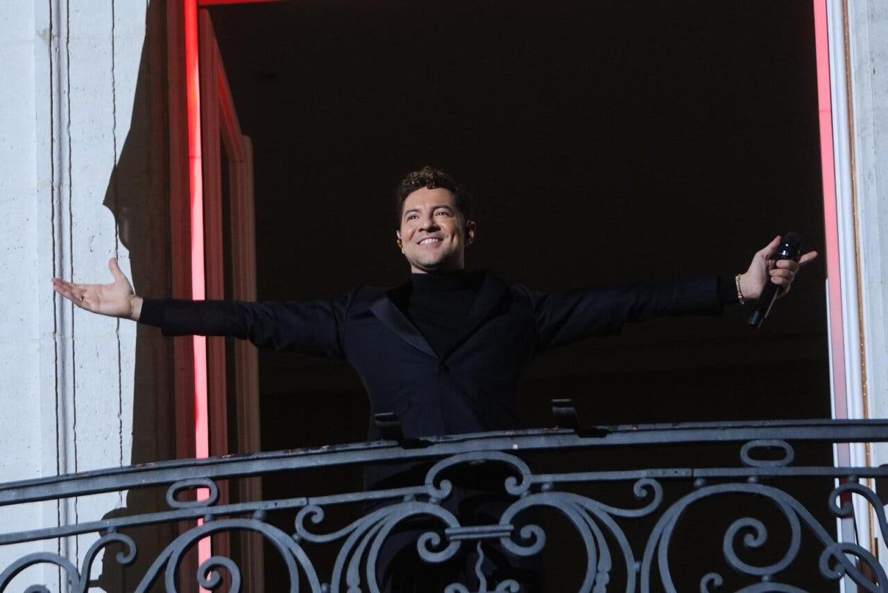 El cantante David Bisbal ha ofrecido este jueves, 19 de diciembre, una actuación gratuita en la Puerta del Sol, desde el balcón de la Real Casa de Correos, sede de la Presidencia de la Comunidad de Madrid.