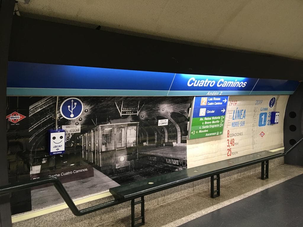 La Comunidad de Madrid convierte desde este miércoles la Línea 1 de Metro en la Línea Centenario con una exposición permanente en las estaciones del recorrido original de la primera línea del suburbano, que transcurría entre Cuatro Caminos y Sol y que en sus inicios se llamó Norte-Sur.