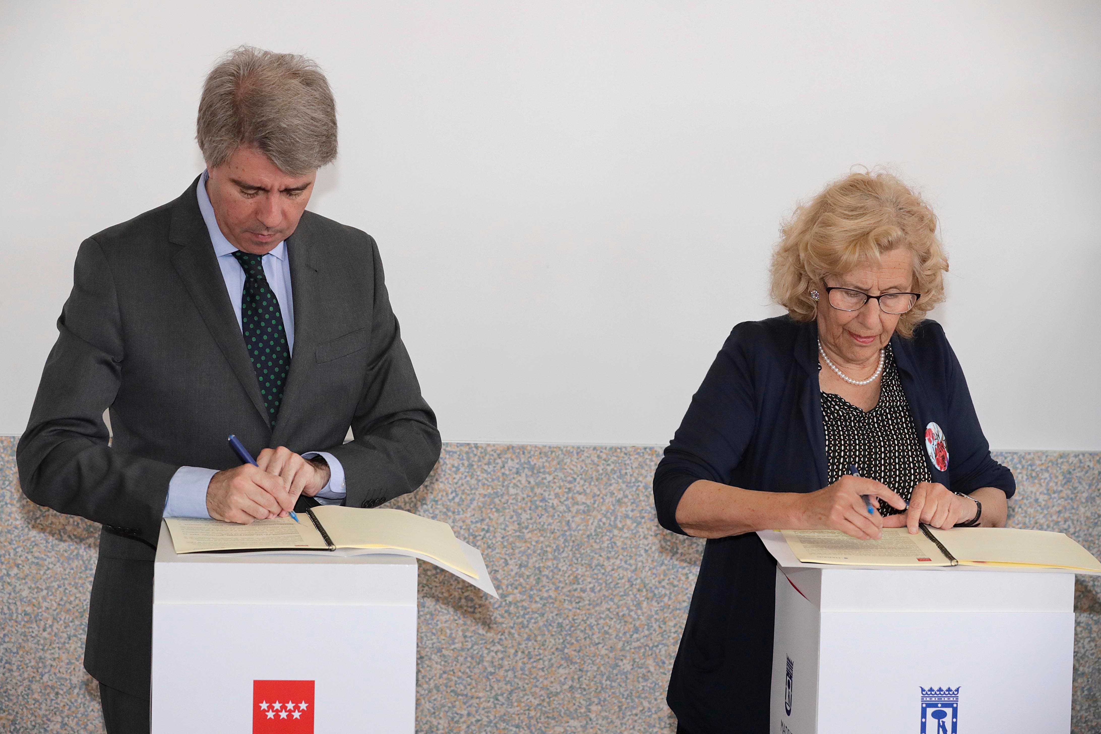 El presidente de la Comunidad de Madrid en funciones, Ángel Garrido, y la alcaldesa de Madrid, Manuela Carmena, han firmado este viernes el acuerdo para el realojo y la integración social de 150 familias del sector 6 de la Cañada Real Galiana, la zona más vulnerable de este asentamiento chabolista, el mayor de Europa, y con el objetivo de acabar con esta realidad de marginalidad en la región.
