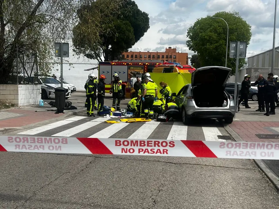 La mujer ha quedado atrapada debajo del vehículo y ha sido rescatada por los Bomberos del Ayuntamiento y de la Comunidad de Madrid. Presentaba un traumatismo facial y una quemadura en el costado izquierdo, según han informado fuentes de Emergencias Madrid.