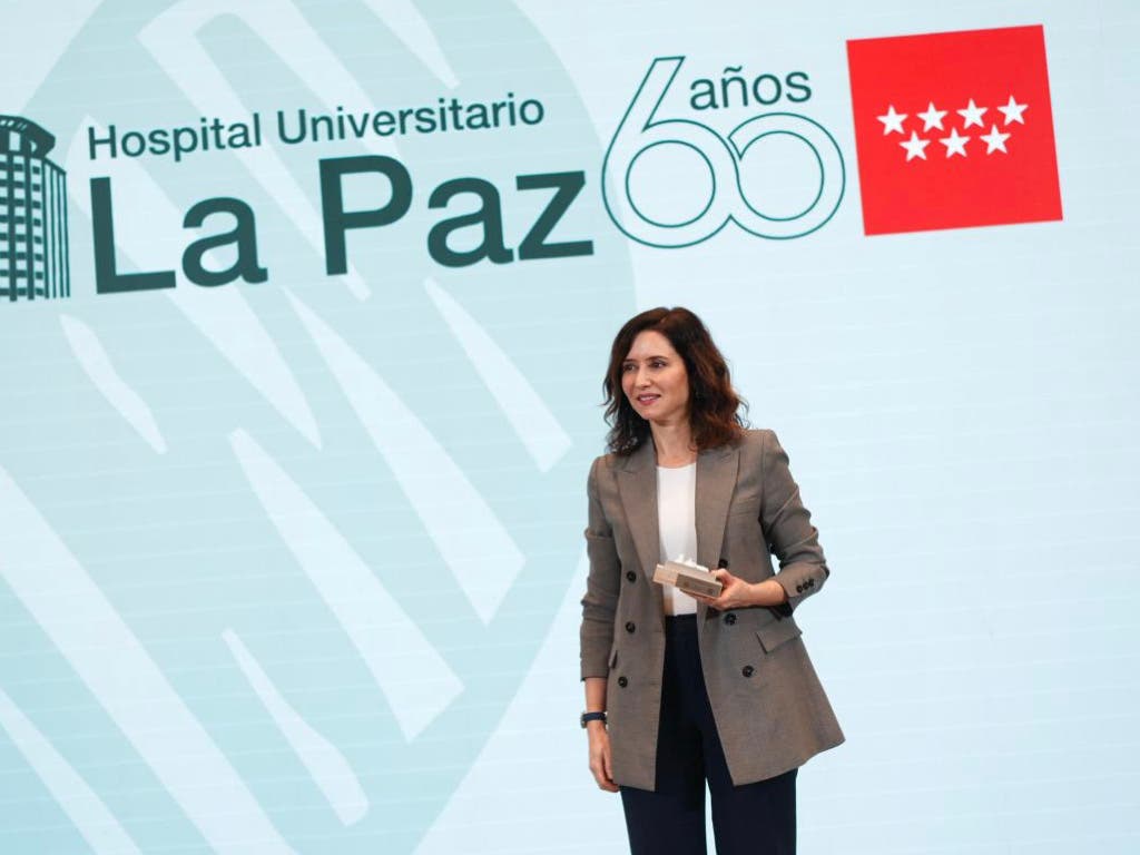 La presidenta de la Comunidad de Madrid, Isabel Díaz Ayuso, ha presidido hoy en el Hospital público La Paz de la capital el acto del 60 aniversario de este complejo que a lo largo de su trayectoria se ha consolidado como un referente nacional e internacional. «La sanidad pública madrileña no conoce barreras ni fronteras administrativas, solo cuenta la solidaridad y la lucha por la vida, orgullosa de ser universal, puntera, de la máxima calidad y para los madrileños nuestro mejor tesoro», ha subrayado.