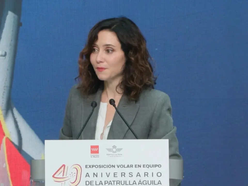 La presidenta ha estado acompañada por el jefe de Estado Mayor del Ejército del Aire y del Espacio, Francisco Braco, en un acto en el que ha destacado la vinculación especial del equipo con la Comunidad de Madrid, donde participa regularmente en celebraciones como el Día de la Fiesta Nacional o el 2 de Mayo.