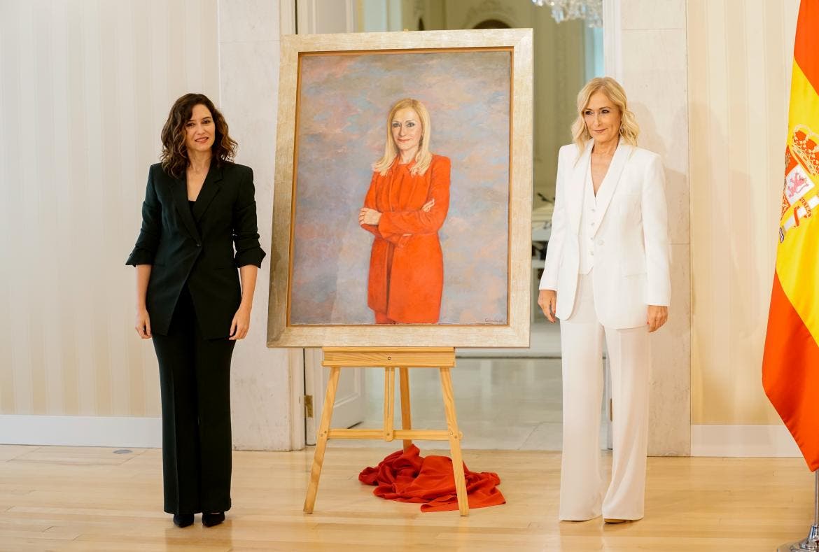 La presidenta de la Comunidad de Madrid, Isabel Díaz Ayuso, ha descubierto hoy en la Real Casa de Correos el retrato de la expresidenta madrileña Cristina Cifuentes, trabajo de Rafael Cidoncha que se suma a los cuadros de otros exmandatarios de la región como Joaquín Leguina, Alberto Ruiz-Gallardón y Esperanza Aguirre, que ya lucen en las paredes de la sede del Gobierno autonómico.