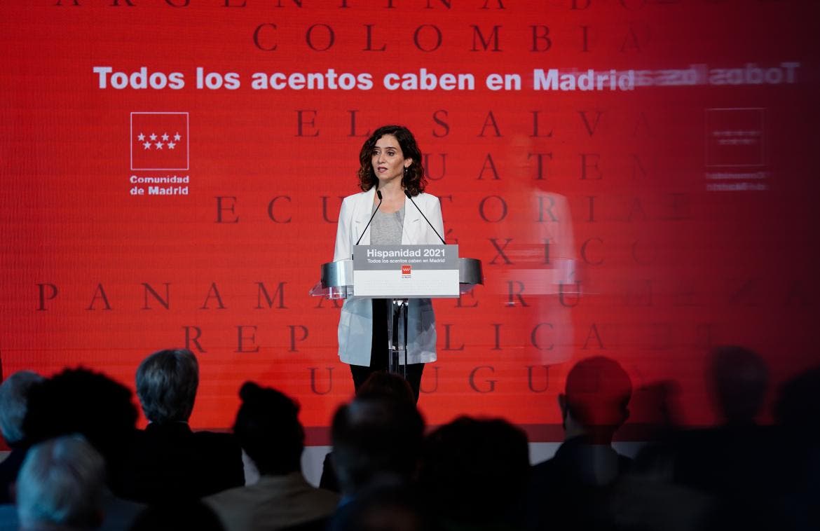 La presidenta de la Comunidad de Madrid, Isabel Díaz Ayuso, ha presentado hoy la Oficina del Español y el Festival Hispanidad 2021, «la mayor apuesta que se ha hecho por parte de una Administración en los últimos años para defender, promover y potenciar nuestro idioma y nuestro legado histórico». «Mientras hay gobiernos populistas (nacionalistas, indigenista, identitarios…) que están negando a sus ciudadanos su mejor legado cultural y violentando su derecho constitucional a conocer y dominar el español, la Comunidad de Madrid sigue trabajando en beneficio de todos: sumando, incluyendo, acogiendo», ha señalado.