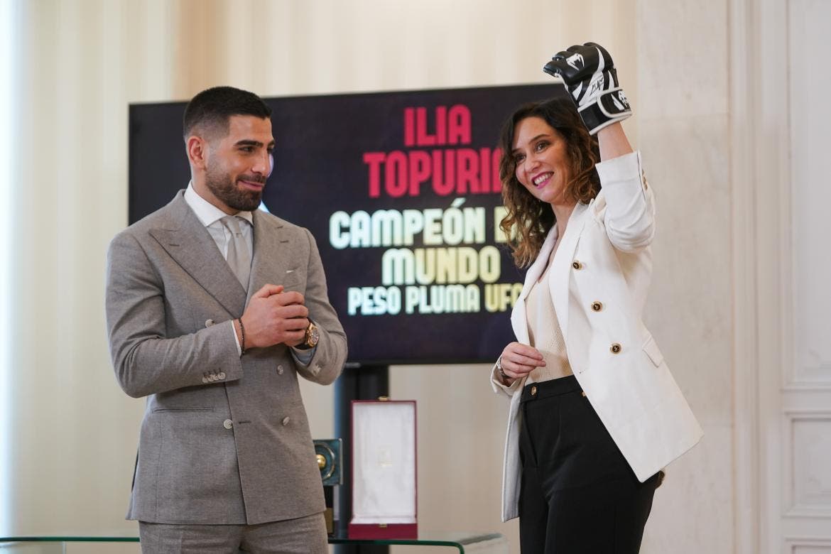 La jefa del Ejecutivo autonómico ha subrayado que Topuria es «el primer deportista que regala a España semejante triunfo», motivo por el que ha manifestado su agradecimiento «en nombre de tantos». También ha destacado «su historia de lucha y superación, habiéndose ganado la vida siempre por si mismo, con esfuerzo y la dignidad de querer llevar sus propias riendas». «Somos un cruce de caminos, región al servicio de este gran país donde aspiramos a que todos sus ciudadanos prosperen, vengan de donde vengan y comprueben que esforzarse y pelear merece la pena», ha enfatizado.