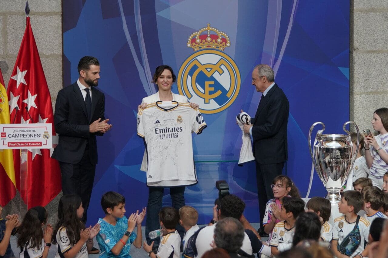 La jefa del Ejecutivo autonómico ha dado las gracias al presidente Florentino Pérez «por traer a Madrid las mejores noticias siempre, llevar el nombre de esta región, capital de España, por todo el mundo y asociar a Madrid con deporte, espectáculo y calidad».