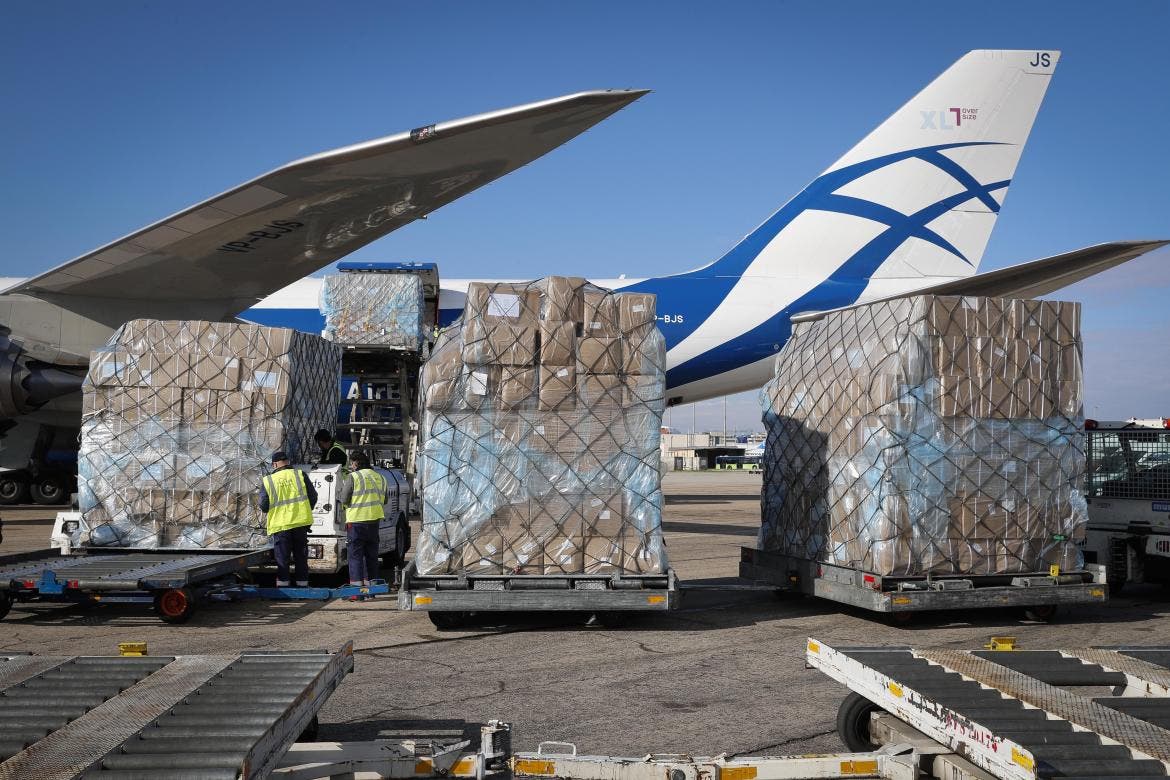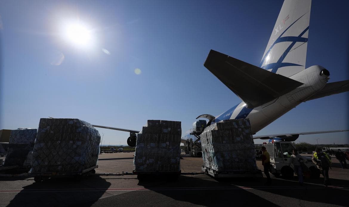 En total, han llegado en 10 días a la Comunidad de Madrid más de 253 toneladas de material sanitario para luchar contra el coronavirus a bordo de tres vuelos.