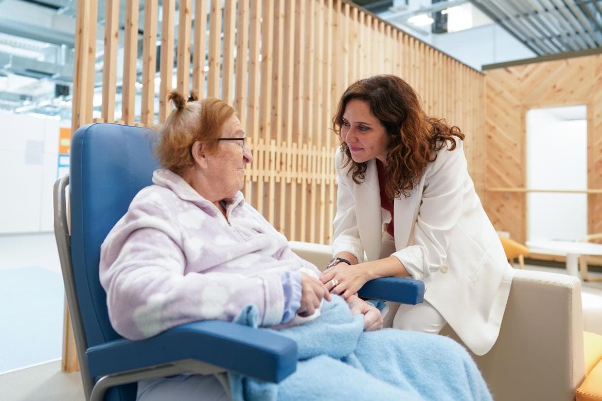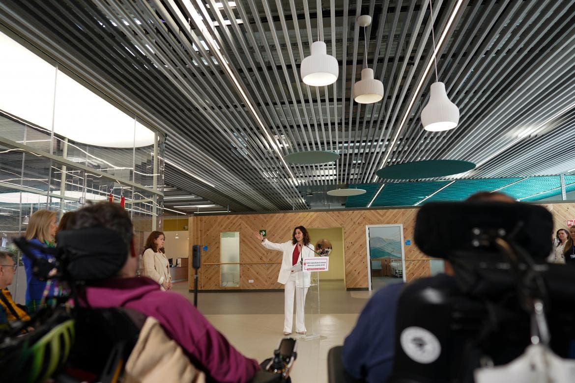 Ayuso visita a los pacientes del nuevo centro de ELA que acaba de abrir en el Zendal