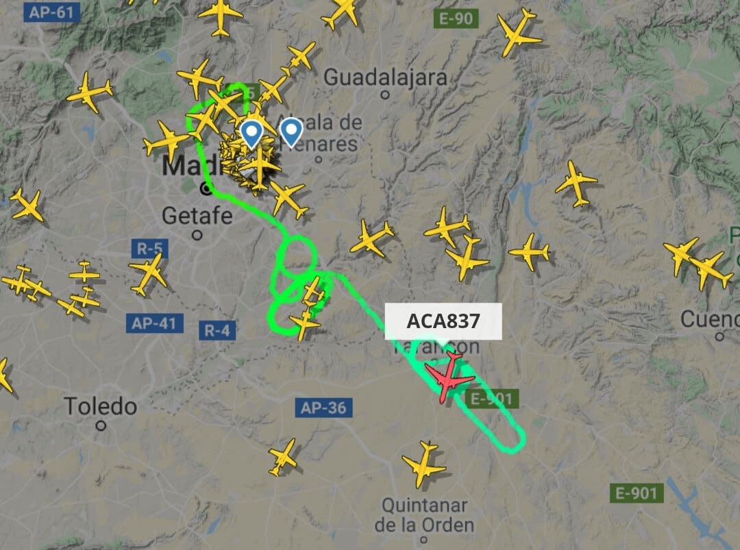 El Boeing 767-300 de la compañía canadiense despegó del aeropuerto madrileño rumbo a Toronto (Canadá) a las 14.33 horas y, tras detectar problemas técnicos, trató de volver a Barajas, donde la presencia de un dron obligó al cierre del espacio aéreo por más de dos horas y a desviar 26 vuelos este lunes.