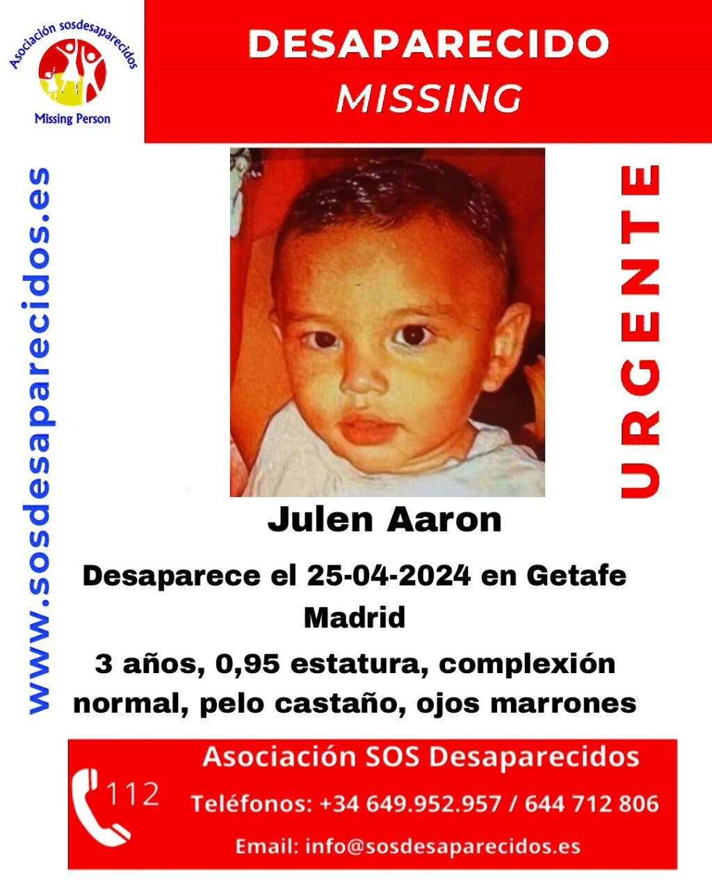 La Policía Nacional investiga la desaparición de un niño de tres años hace más de un mes en la localidad madrileña de Getafe, según se ha conocido este pasado lunes. Se trata de Julen Aaron, quien desapareció el pasado 25 de abril.