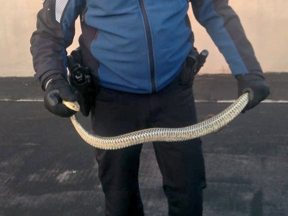 La Unidad de Medio Ambiente de la Policía Municipal de Madrid ha capturado un ejemplar de culebra bastarda en un garaje del distrito de Villaverde.