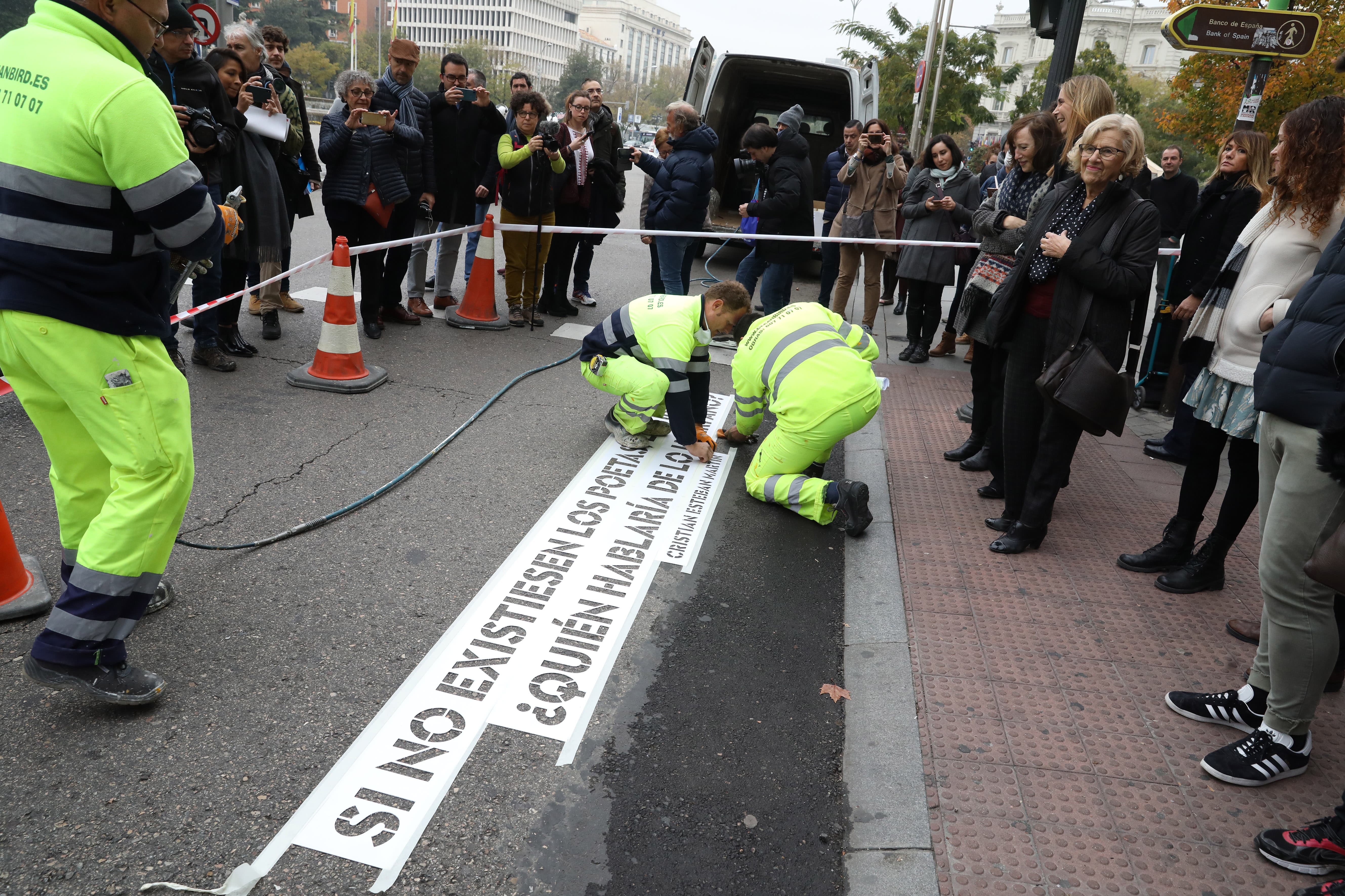Carmena presenta los versos pintados en pasos de peatones de Madrid