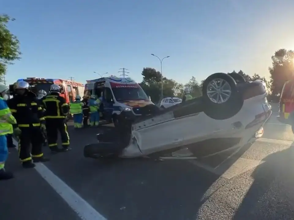 Chocan dos vehículos en la A-4 y uno de ellos queda volcado