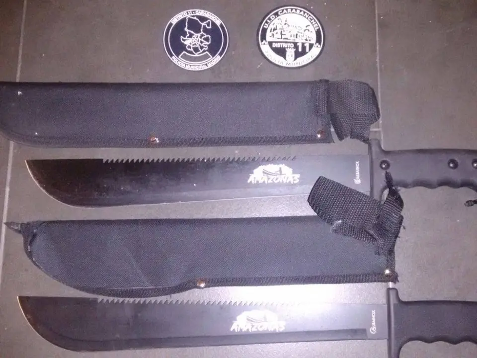 En el momento de la detención los jóvenes portaban cuatro machetes de grandes dimensiones, de entre 38 y 52 centímetros.