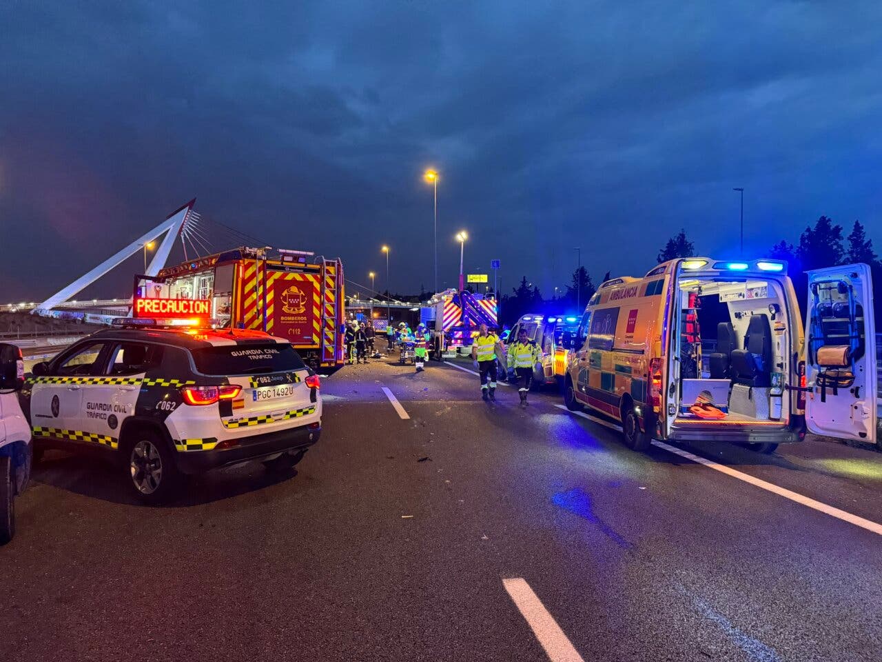 El accidente tuvo lugar sobre las 6:18 horas del pasado domingo. El turismo que circulaba en sentido contrario chocó de manera frontal con otro coche que circulaba correctamente y una moto de la Policía Municipal de Madrid, como contamos aquí en MiraCorredor.
