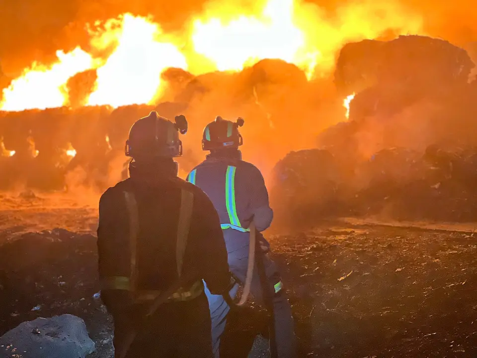 Las llamas han afectado a unos 2.000 metros cúbicos de superficie y han quemado bloques de papel y plástico prensado. Las llamas generaron una gran columna de humo aunque sin afectación a la población.