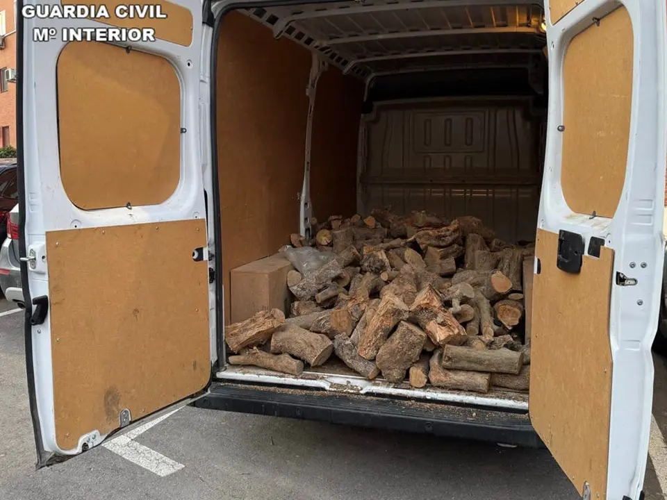 La cabina de la furgoneta se encontraba ocupada por un hombre y una mujer, encontrándose en la caja de la misma dos varones más junto a la leña. Al no poder acreditar la procedencia de la leña, se procedió a su detención y puesta a disposición judicial. Los detenidos son tres varones y una mujer.