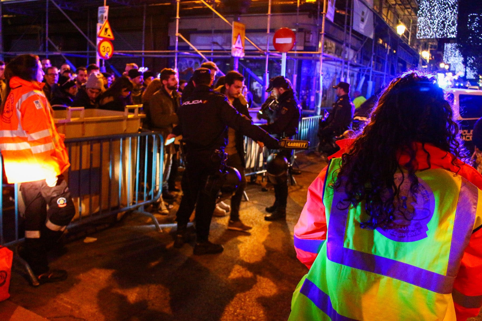 A partir de las 21.30 horas se procederá a la apertura de los filtros. Para que la gente no ocupe espacio en las calles previstas como vías de evacuación, habrá agentes de la Policía Municipal y Nacional en Puerta del Sol con las calles Preciados, Carmen y Montera.