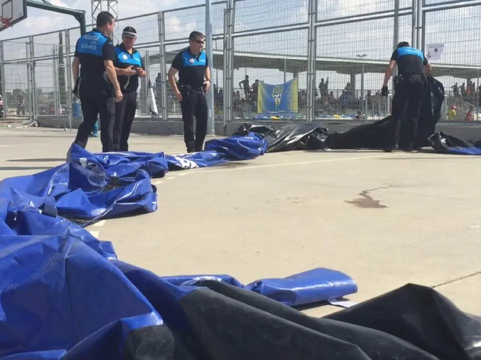 ℹ️ 3 adultos y 1 niño han resultado heridos después de que el viento haya levantado 4 castillos hinchables en un cole #Leganés. Calle Parla pic.twitter.com/E6uqMab8rT