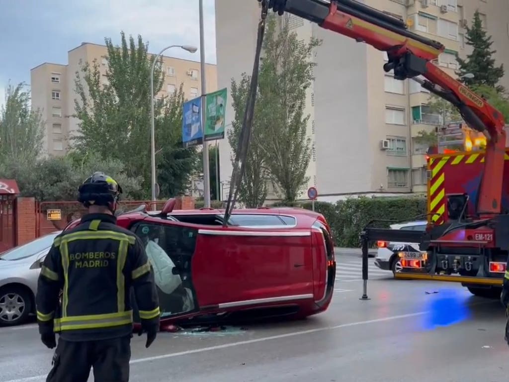 Los Bomberos del Ayuntamiento de Madrid han ayudado a salir de los vehículos a sus ocupantes en ambos siniestros y han dado la vuelta a los turismos utilizando el cabestrante.