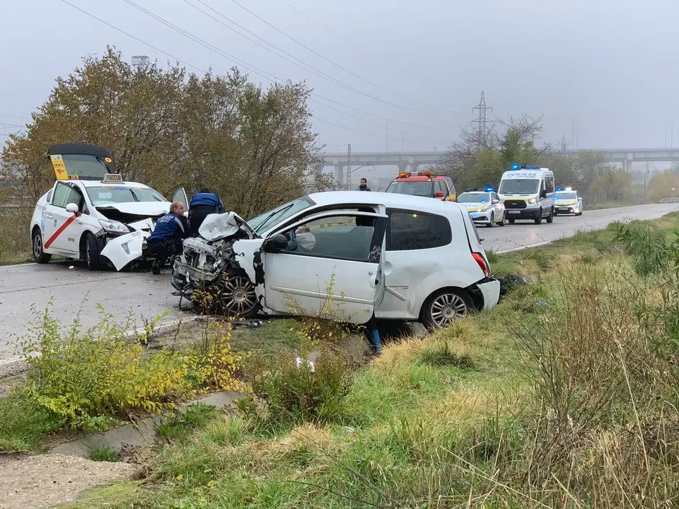 Dos personas han resultado heridas graves y otras dos leves este martes tras colisionar un coche participar y un taxi a la altura del número 135 de la Carretera de Vicálvaro, en dirección a la estación de O'Donnell, ha informado Emergencias Madrid.
