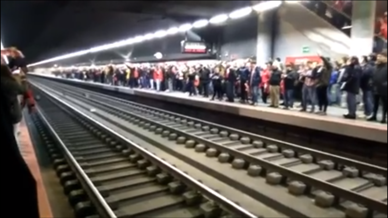 Un vídeo grabado por un aficionado en una estación de Metro que ha compartido la página de Facebook Bendita Afición y en el que se puede ver cómo decenas de hinchas cantan a voz en grito el himno del Atlético mientras esperan la llegada del tren.