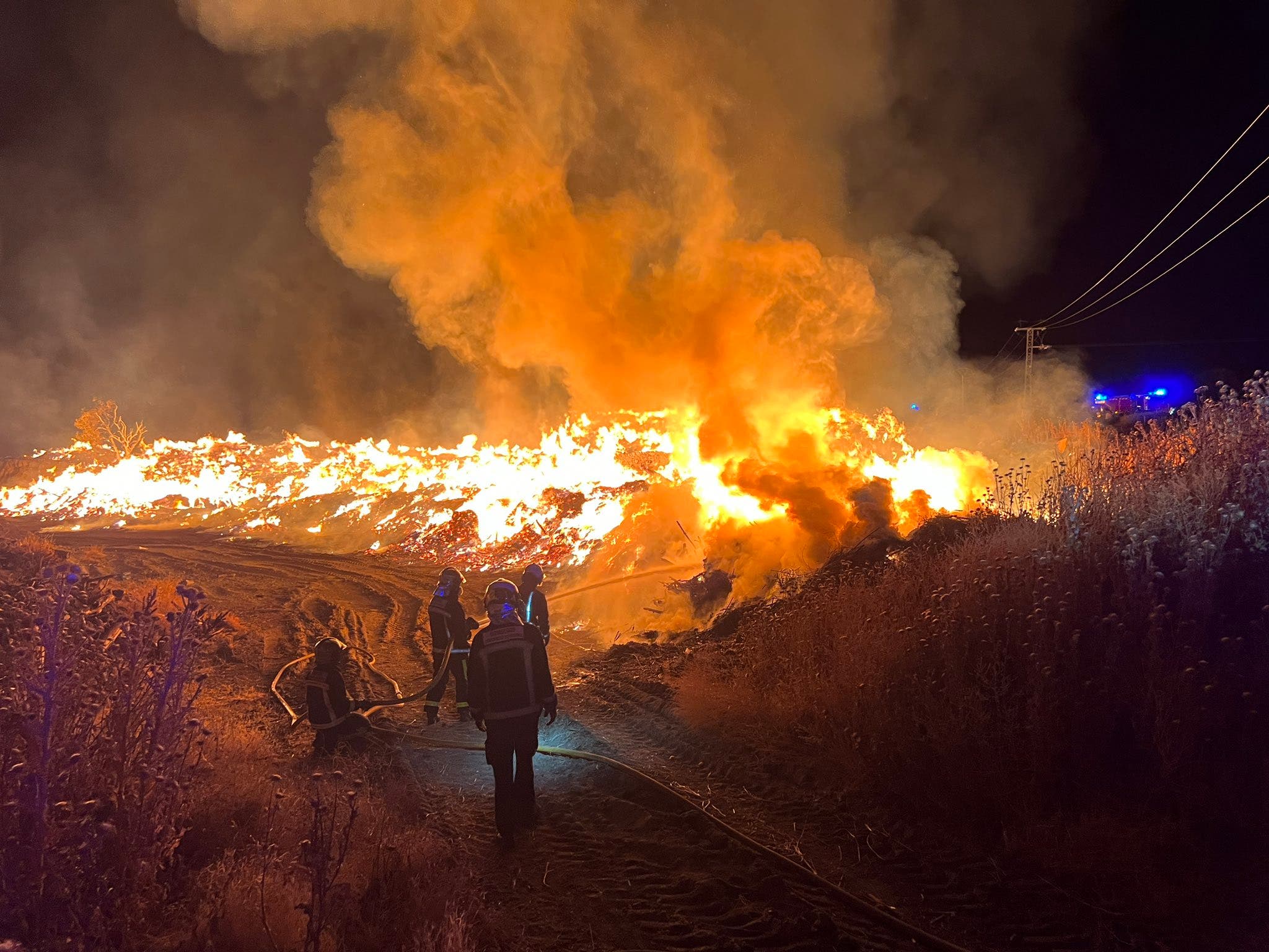 Ocho dotaciones de Bomberos de la Comunidad de Madrid han trabajado esta madrugada en la extinción de un incendio que afecta a unos 8.000 metros cuadrados de extensión con restos de poda y árboles en el municipio madrileño de Guadalix de la Sierra.